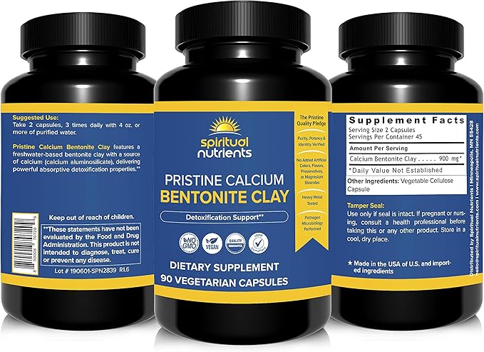 - PRISTINE CALCIUM BENTONITE CLAY FEATURES a unique source of calcium bentonite clay called calcium aluminosilicate, which delivers powerful absorptive detoxification support for the whole body.