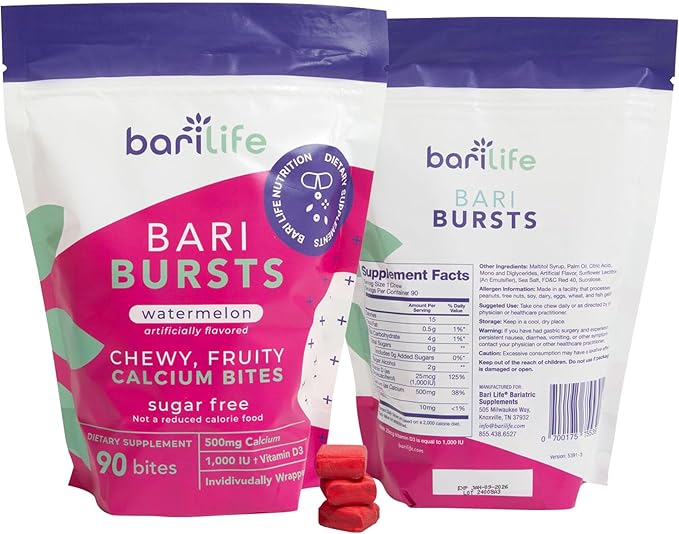 Calcium Citrate Bariatric Calcium Chews with 1000 IU Vitamin D3 - Ideal for Bariatric Patients - BariBurst by Bari Life (Watermelon)