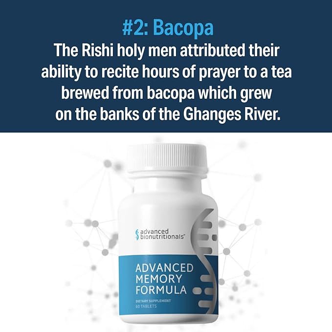 Advanced Bionutritionals Advanced Memory Formula, Brain Booster Supplement for Memory and Focus, Acetylcholine, Alpha-GPC, NeuroFactor, Manufactured in The USA, 60 Tablets