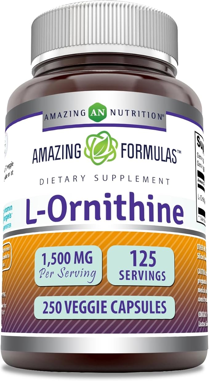 Amazing Formulas L-Ornithine Supplement | 1500 Mg Per Serving | 250 Veggie Capsules | Non-GMO | Gluten Free | Made in USA