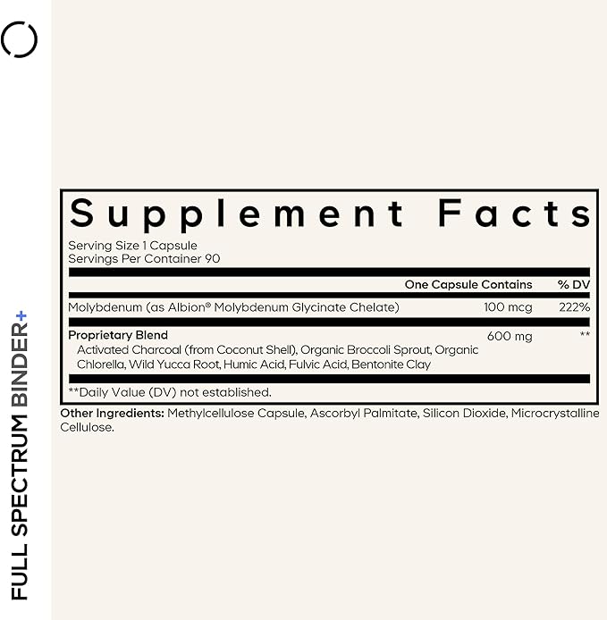- Vegan Binder Supplement: Codeage Binder + offers a premium blend of activated charcoal, bentonite clay, humic acid, fulvic acid, organic broccoli sprouts, organic chlorella extract, wild yucca root extract, and molybdenum in an all-in-one formula.