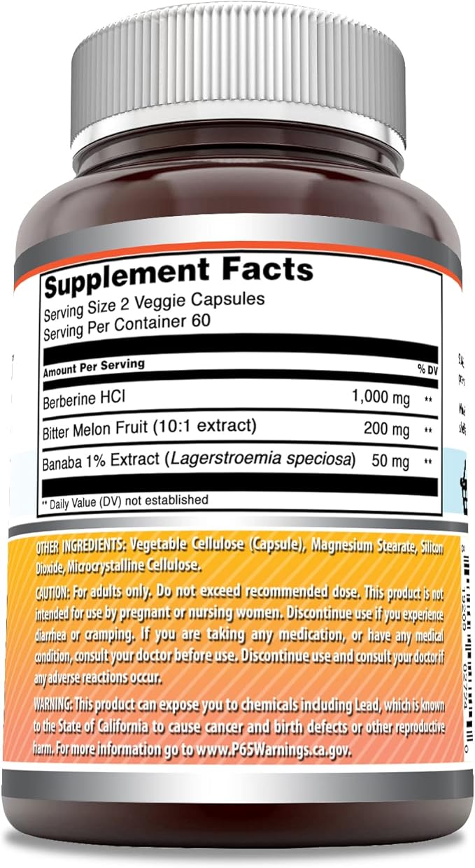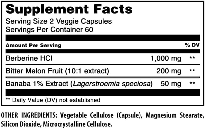 - Berberine Complex Contains Bitter Melon & Banaba Extract 1250 Mg per Serving Supplement