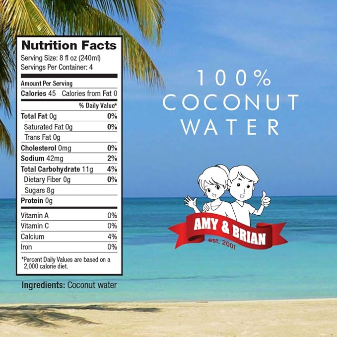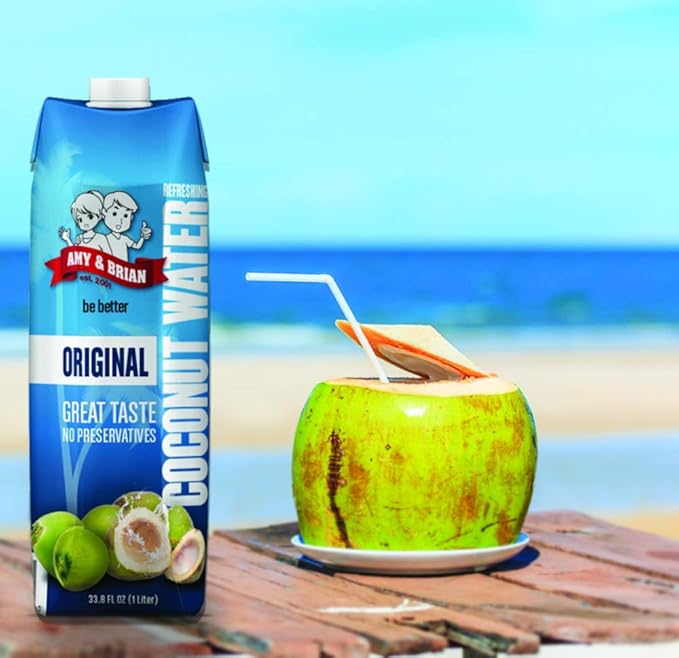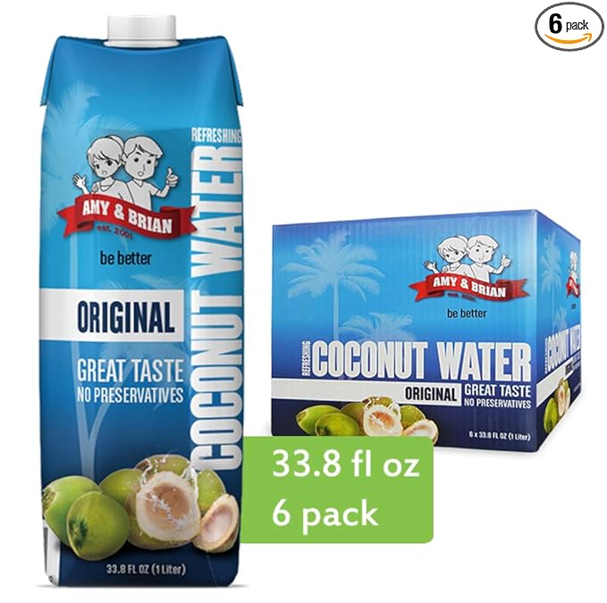 Amy & Brian Pure Coconut Water, 1 Liter (Pack of 6), Best Tasting Coconut Water, Non-GMO & No Added Sugar, Refreshing & Hydrating Real Coconut Water