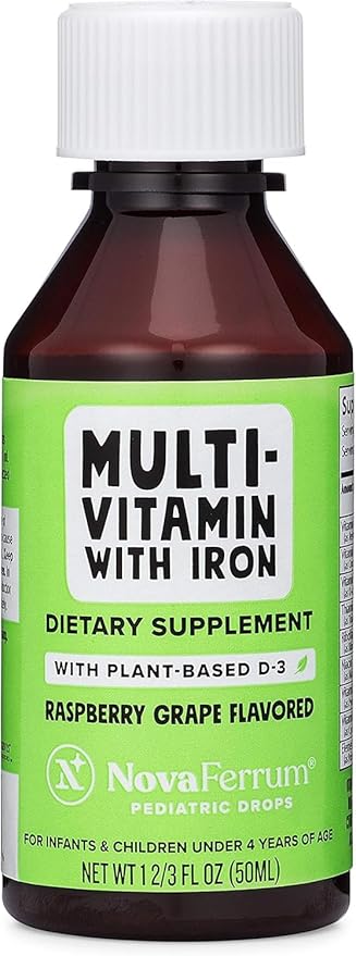 NovaFerrum Delish | Vegan Multivitamin with Iron for Infants, Toddlers & Kids | Immune Support | Organic Plant-Based D-3 | Gluten Free | Vegan Verified | Sugar Free | 1.69 Fl Oz (50 mL)