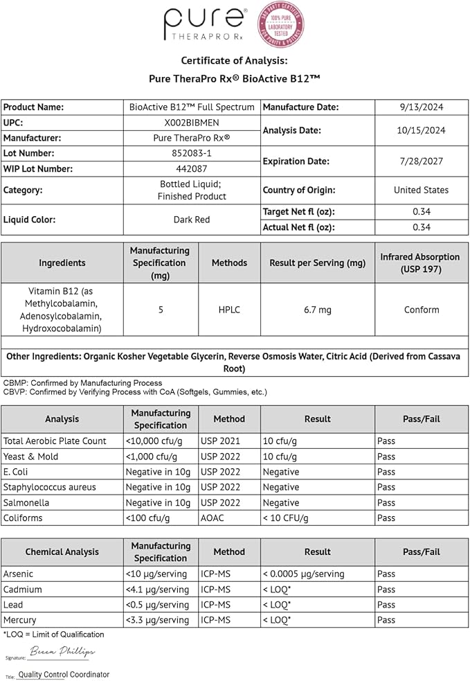 Pure TheraPro BioActive Vegan Methylated Vitamin B12 Sublingual Liquid Methylcobalamin, Hydroxocobalamin & Adenosylcobalamin 1,000 mcg per Drop (5 Drops = 5,000mcg / 2 Month Supply) 10 ml