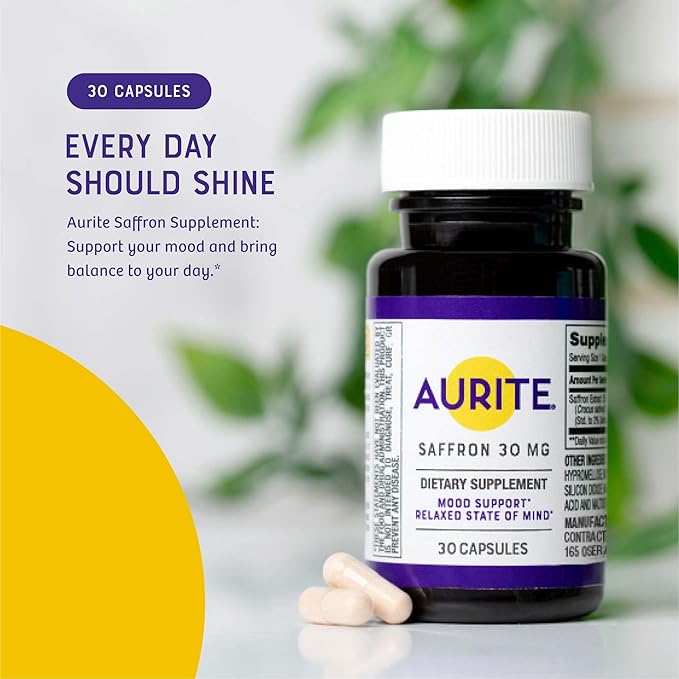 - Aurite Saffron 30-Count, 1-Month Supply - Emotional Balance & Calming: Aurite Saffron, a pure premium saffron supplement, is formulated to support emotional well-being, promote a positive mood, and help reduce occasional stress, so you can feel calm, balanced, and uplifted daily.