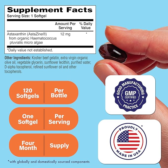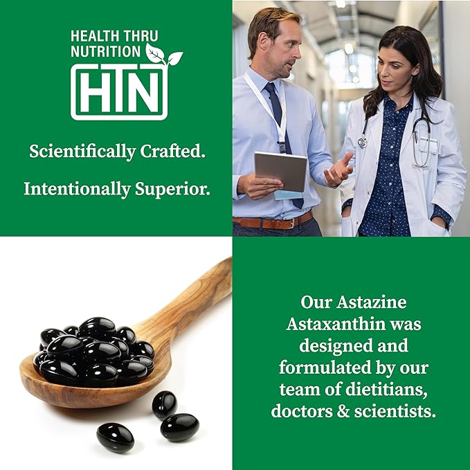 Health Thru Nutrition Astaxanthin Triple Strength 12mg Supplement 120 Softgels | AstaZine from Algae Organically Grown in Pristine Himalayan Water | Skin and Vision Support