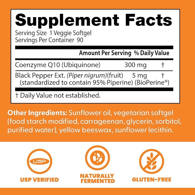 Doctor's Best High Absorption CoQ10, Heart & Energy Support, USP Verified, Naturally Fermented CoQ10, Non-GMO Gluten Free, Soy Free, Vegetarian 90 Veggie Softgels