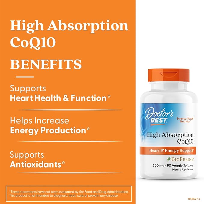 - DOCTOR’S BEST HIGH ABSORPTION COQ10: Easy-to-absorb form of a key nutrient that powers and protects heart vitality, cardiovascular health and cellular energy*. CoQ10 also supplies antioxidant support to the heart, where it is naturally concentrated.