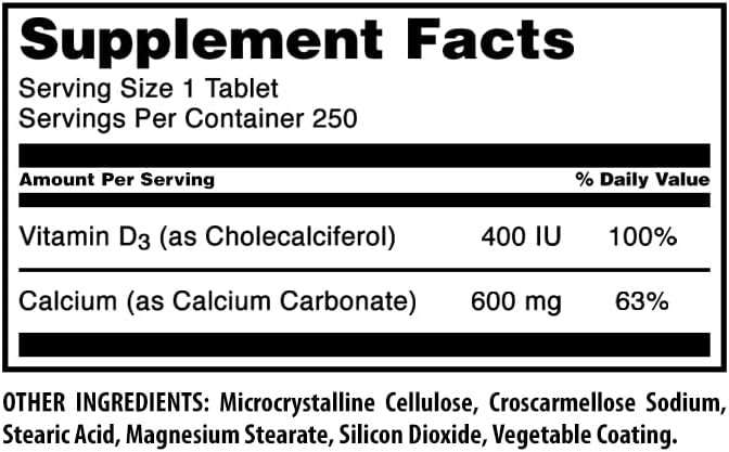 Amazing Formulas Calcium with Vitamin D3 Supplement | Tablets | Non-GMO | Gluten-Free | Made in USA (250 Count, 1 Pack)
