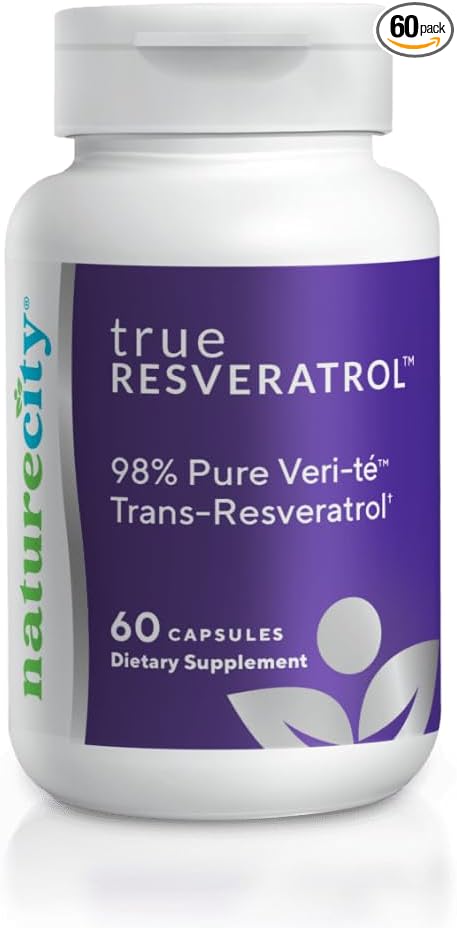 NatureCity TrueResveratrol – Resveratrol Supplement & Anti-Aging Support with 75mg Trans-Resveratrol (98% Pure Veri-te) for Heart, Immune, Bone & Cognitive Health | 60 Veggie Capsules
