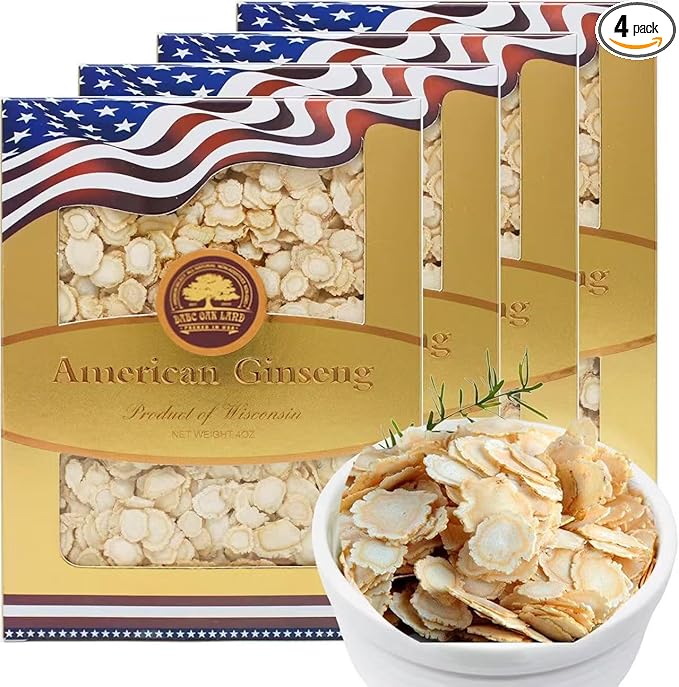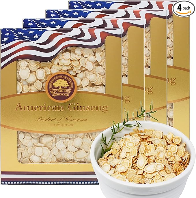 4 Boxes of American Ginseng Slices from Wisconsin,American Wisconsin Ginseng Slices Root for Tea, Energy for Men Women Mental Health Boosts Immunity, Gluten Free 花旗參, Small Round,16oz