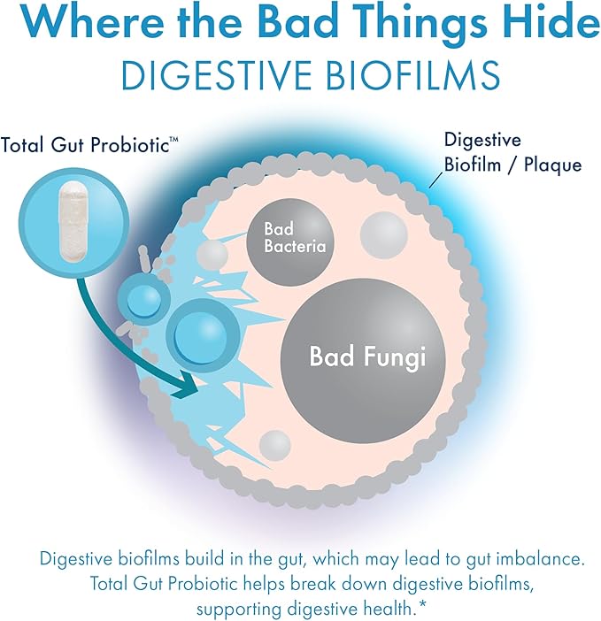 - GOOD BACTERIA + GOOD FUNGI + DIGESTIVE ENZYMES = TOTAL GUT BALANCE - BIOHM Total Probiotic is the only daily probiotic designed to combine good bacteria and good fungi with a powerful enzyme to break down digestive plaque, Support Healthy Candida Levels, and help support stool regularity, and address total gut balance*