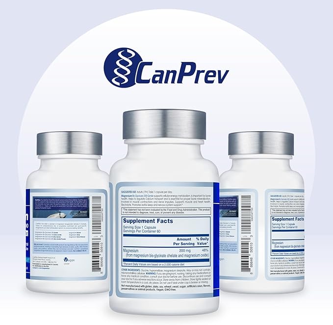 - Excellent Absorption and Pure Ingredients: Benefit from the advantages of pure elemental magnesium with CanPrev Magnesium BisGlycinate, designed for superior absorption and bioavailability. Free from GMOs, gluten, and dairy, and without artificial additions, this chelated magnesium bisglycinate delivers a product of exceptional quality. Ideal for those following a vegan lifestyle, it fulfills your pure magnesium needs while upholding ethical practices.