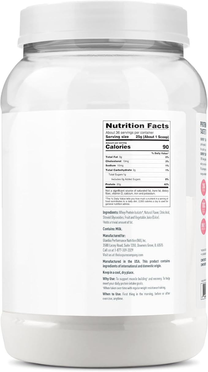 - One 1.9 lb bottle (36 servings) of Isopure 100% Pure Whey Isolate Protein Powder Infusions in dynamically delicious Tropical Punch flavor