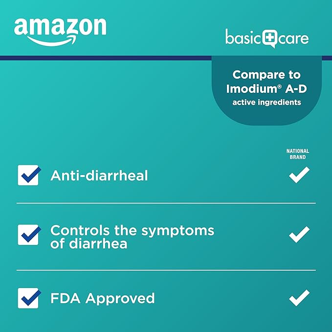 Amazon Basic Care Loperamide Hydrochloride Tablets, 2 mg, Anti-Diarrheal, 24 Count (Pack of 1) (Packaging may vary)