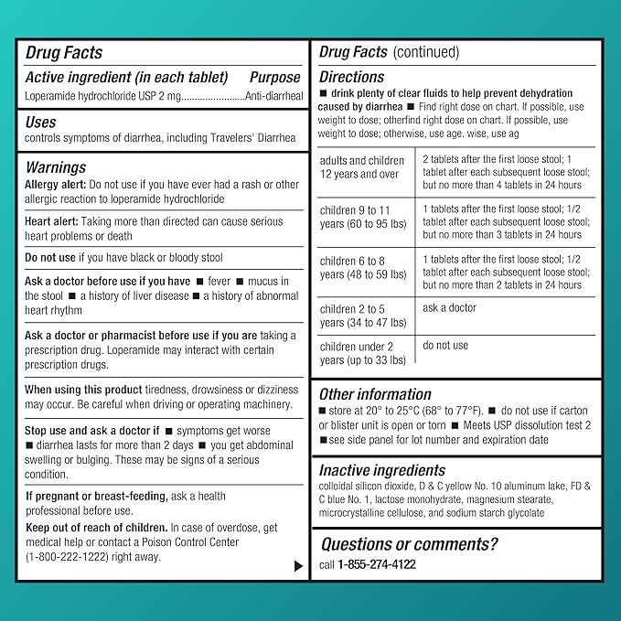 - ACTIVE INGREDIENT: This product contains Loperamide Hydrochloride 2 mg, an anti-diarrheal. Compare to the active ingredient in Imodium A-D