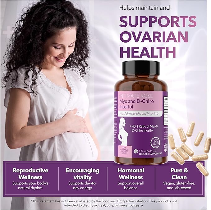 Intimate Rose Myo-Inositol & D-Chiro Inositol Supplement for Women - Hormone Balance & Ovarian Support for Women - Ideal 40:1 Ratio, Vitamin D3 + Ashwagandha