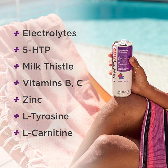 - PARTYAID is jam-packed with key vitamins & essential nutrients like 5-HTP, Milk Thistle, L-Tyrosine, B-Complex & electrolytes to help revive your mind and body. 5-HTP is a natural precursor to the neurotransmitters serotonin and melatonin, helping you keep your mood elevated and avoid the crash + L-Carnitine supports energy production and metabolism, aiding recovery
