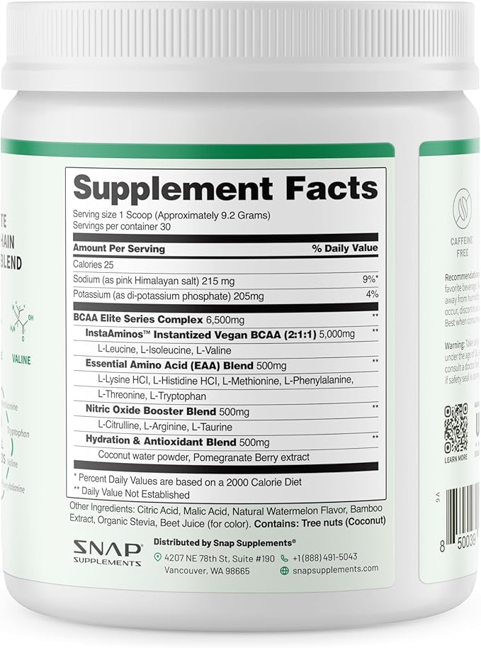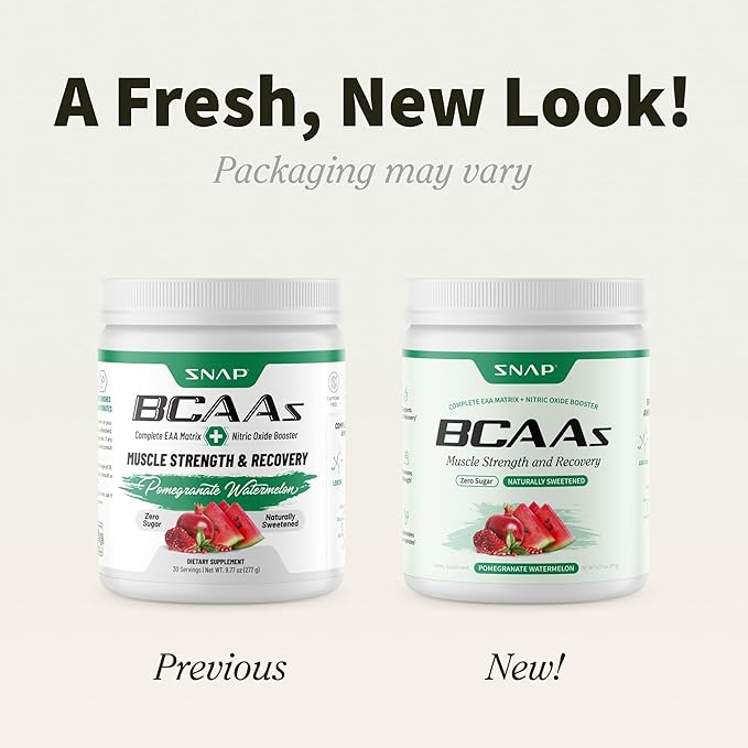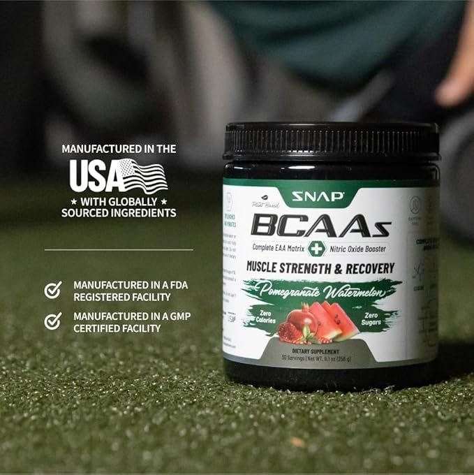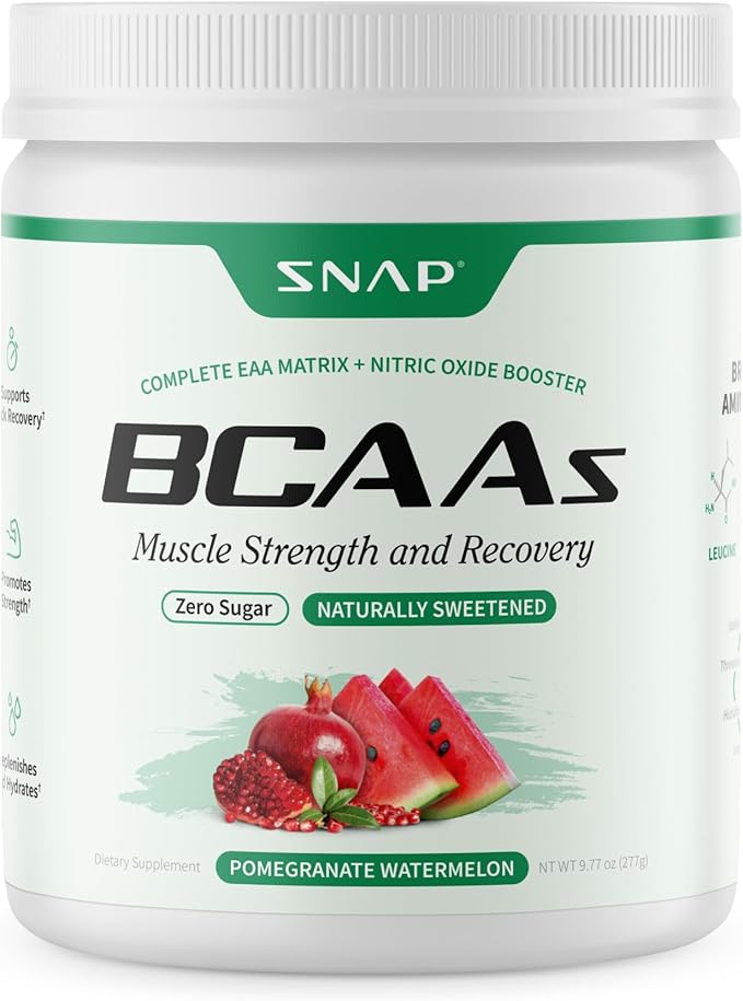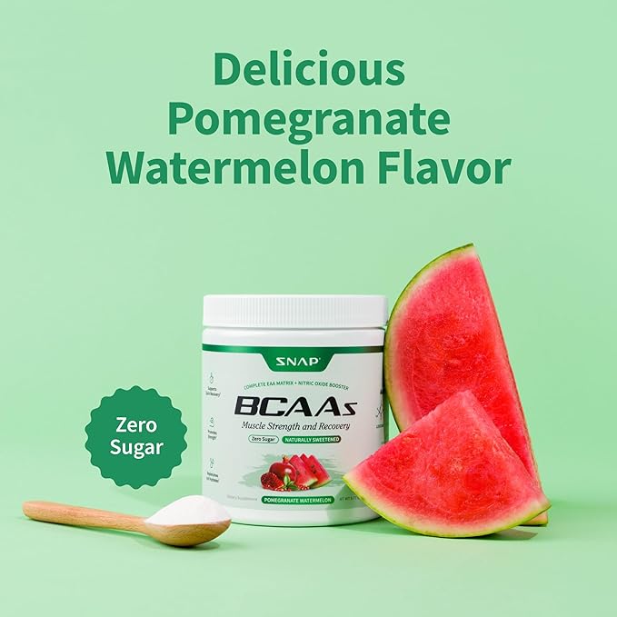 Snap BCAA Powder Essential Amino Energy Supplement with Nitric Oxide Booster - Watermelon Flavor - Pre Workout Powder, Recovery Supplements Post Workout, Muscle Strength & Performance (30 Servings)