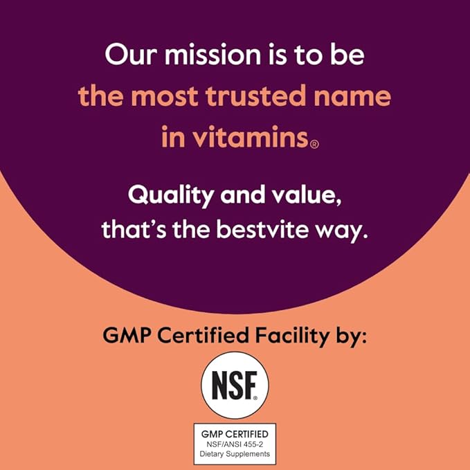 - NSF GMP CERTIFIED: Bestvite’s facility is NSF/ANSI 455-2 Dietary Supplements Good Manufacturing Practice (GMP) certified. Earning GMP certification from NSF verifies that a manufacturing facility has the proper methods, equipment, facilities, and controls in place to produce dietary supplement products.