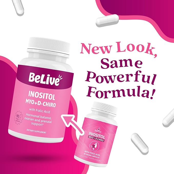 BeLive Myo-Inositol & D-Chiro Inositol Capsules - 90Ct I Inositol Supplement with Folic Acid Supplements for Woman, Optimal 40:1 Ratio (1)