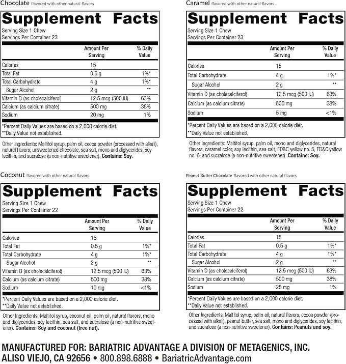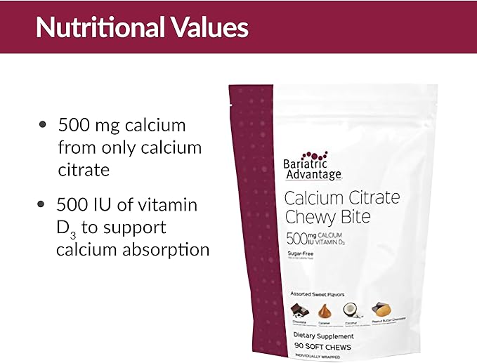 - Sugar-Free Chews: Each Bariatric Advantage chew is individually wrapped and sugar-free, making them easy to take on the go and an ideal choice for a chewable calcium supplement with no additional sugar content