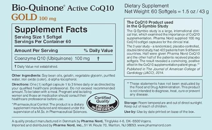 Pharma Nord Bio-Quinone Gold Coenzyme Q10 100mg | The Original CoQ10 | High Absorption, Backed by Research | Essential Antioxidant for Energy, Heart Health and Fertility Support* | 150 Softgels
