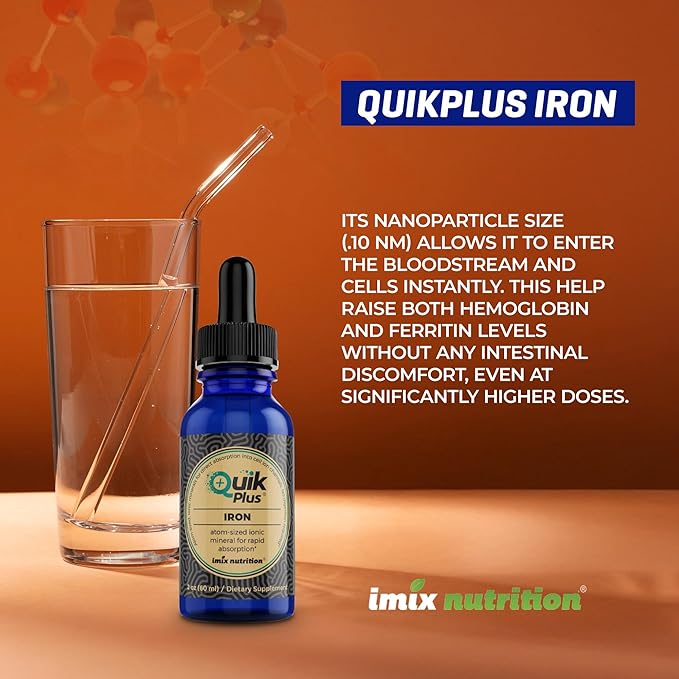 - No Digestion Required: QuikPlus Iron is nano-sized (less than 250 picometers) and ionically charged for direct absorption into the bloodstream, ensuring maximum bioavailability without the need for digestion