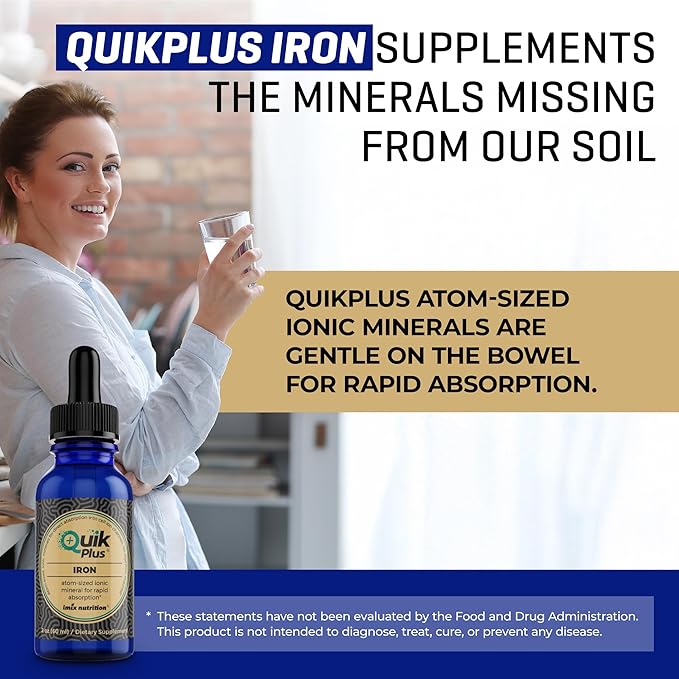 QuikPlus Iron Ionic Liquid Mineral Supplement for Hemoglobin & Ferritin – High Absorption Iron Supplement for Adults – Vegan, Gluten-Free, All Natural – 2 oz Bottle