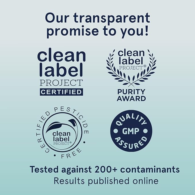 - FULL TRANSPARENCY Every batch of every product tested for purity and potency by Clean Label Project. They use independent laboratories and publish the test results for everyone to see