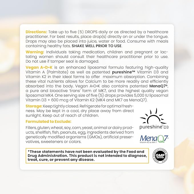 - ππππππππ πππππππππ π ππππππ:Our practitioner-recommended vegan Vitamin A, Vitamin D3 & Vitamin K2 formula utilizes 100% liposomal liquid Vitamin D3 & K2 for maximum absorption. Multiple scientific studied have proven that liposomal nutrients aborb faster and more eficiently, and are better utilized by your body. Purity is prority.