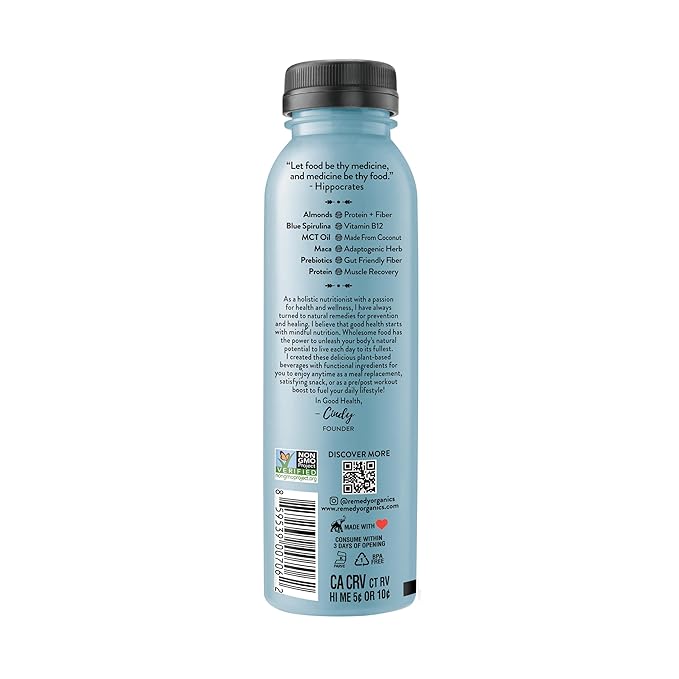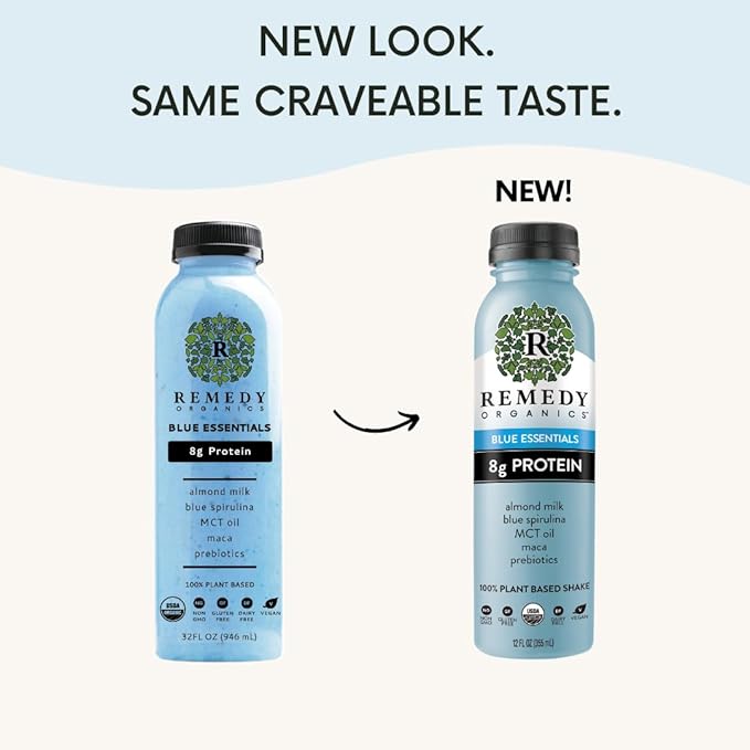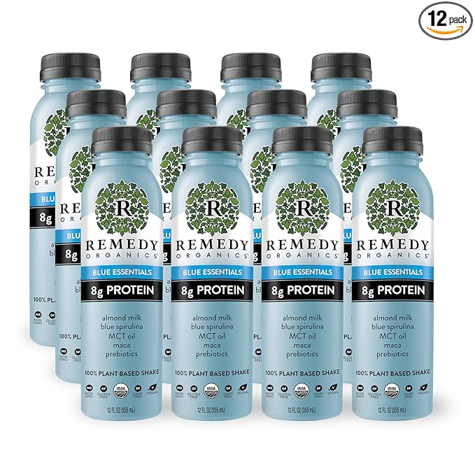Remedy Organics Blue Essentials 12-Pack | Plant Based Protein Shakes, Ready to Drink | USDA Organic, Gluten Free, Dairy Free, Soy Free