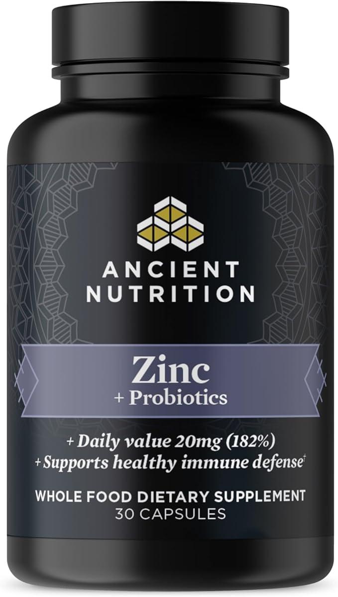 Ancient Nutrition Probiotics and Zinc Supplement, Supports Healthy Immune System and Gut Health, Made Without GMOs, Superfoods Supplement, Paleo and Keto Friendly, 30 Count