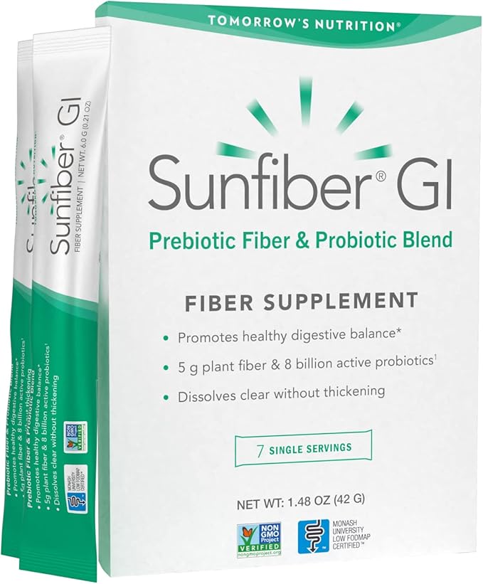 Tomorrow's Nutrition Sunfiber GI 7-Day Kit, Prebiotic Fiber & Probiotics, 5g Prebiotic Fiber & 8 Billion Probiotics Per Serving, Low FODMAP, 7 Packets, Unflavored