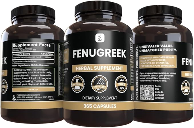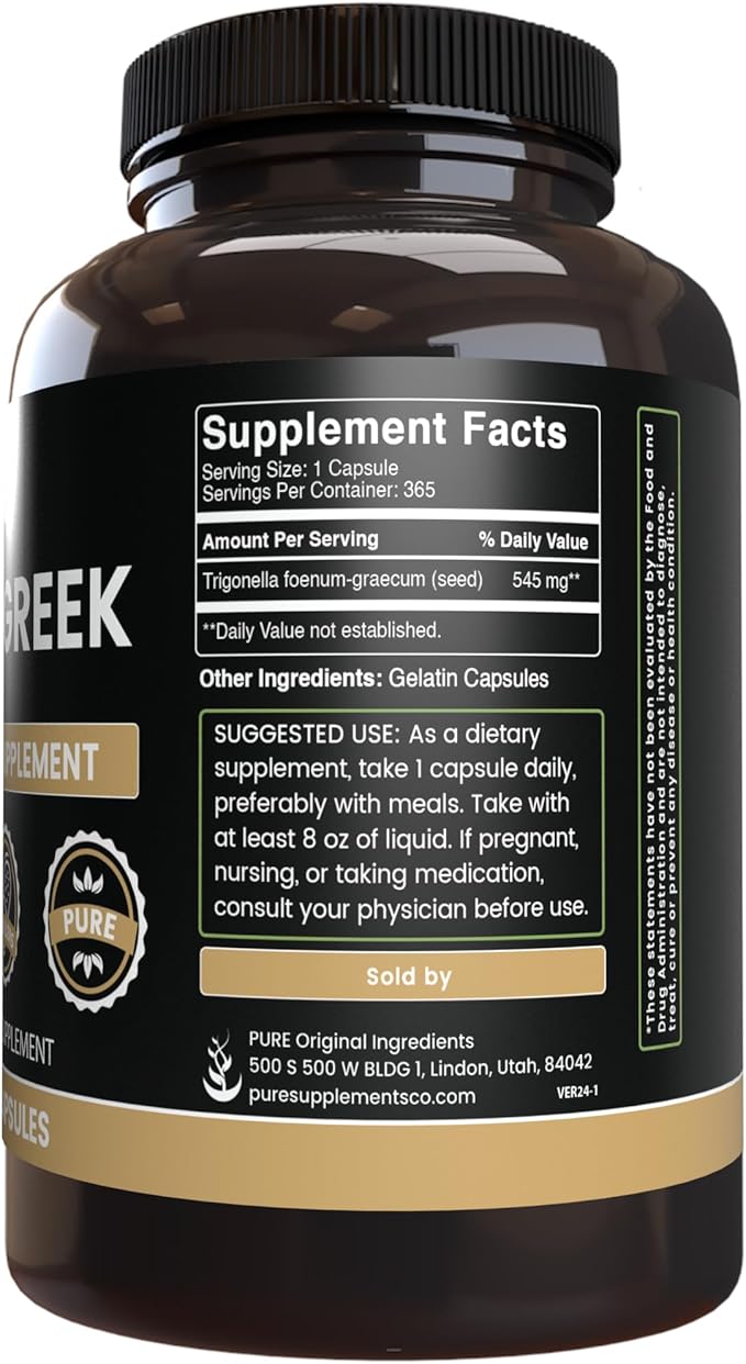 Pure Original Ingredients Fenugreek (365 Capsules) No Magnesium Or Rice Fillers, Always Pure, Lab Verified