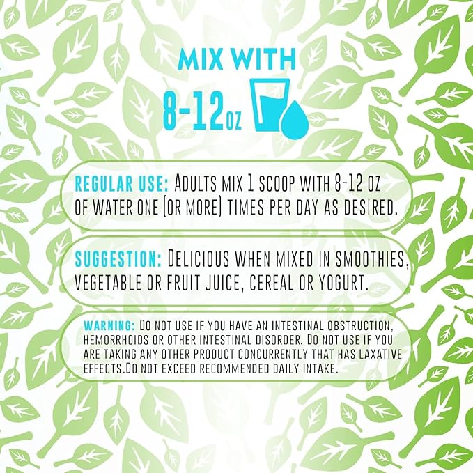 - 30 Scoops Per Bottle: Adults mix 1 level scoop with 8 to 12 ounces of water or favorite beverage one (or more) times per day as desired. Delicious when mixed in smoothies, vegetable or fruit juice, cereal or yogurt. Scoop included.