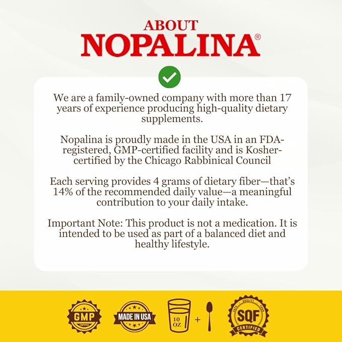 - Nopalina is made in the USA in an FDA-registered facility. It is GMP-certified, Kosher, and crafted with quality ingredients to meet high safety standards.