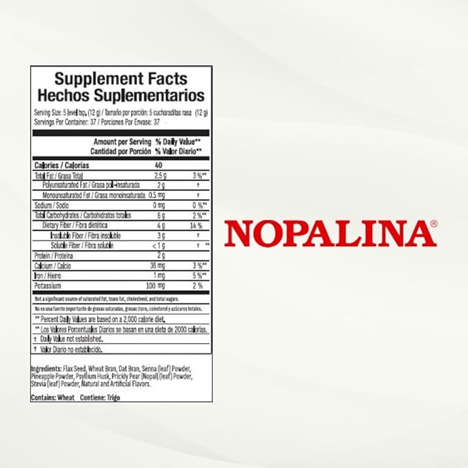 - Made with 100% natural ingredients, including flaxseed, psyllium husk, and edible cactus (nopal).