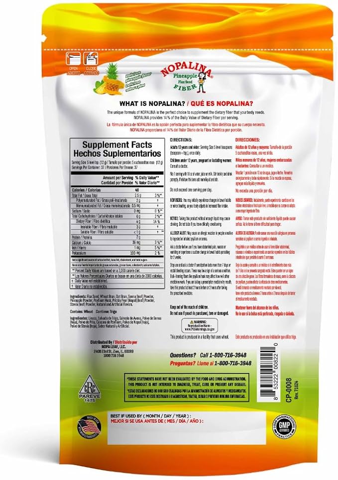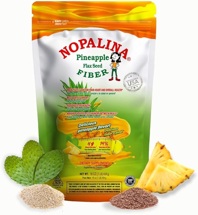 Nopalina Fiber Formula | Pineapple | 1 Lb Bag | 30 Servings | Flax Seed, Psyllium, Oat and Wheat Bran, Omega 3, 6 & 9 | Can Help with Regularity & More | The Original