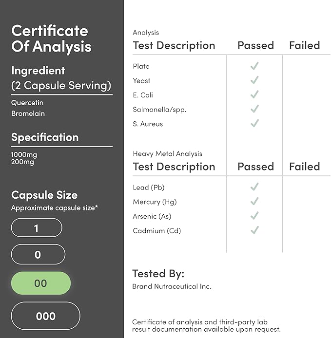 - 2 MONTH SUPPLY: We include enough Quercetin and Bromelain to provide 60 servings of 1,000 mg Quercetin and 200 mg Bromelain
