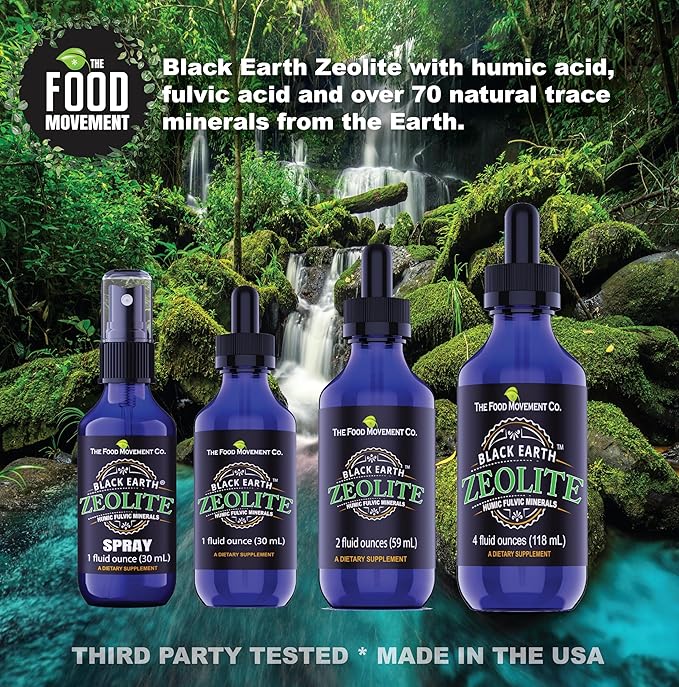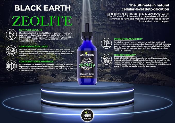Black Earth Zeolite with Humic Fulvic Acids Trace Minerals for Adults and Kids for Detox, Gut Health and Immune Support - 2oz Liquid Drops Supplement