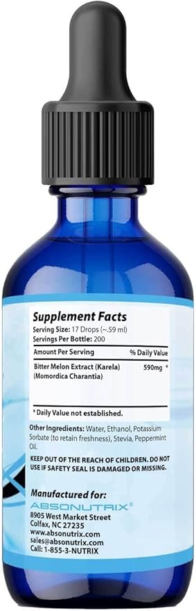 Absonutrix Bitter Melon Extract 590 mg, 4 Fl Oz, 200 Servings, Optimum Bioavailability, Quality Ingredients, Cruelty-Free Products, Non-GMO, Third-Party Tested, GMP-Certified, Made in USA