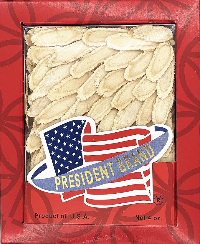 American Ginseng SKU 0168PB-M4 |Wisconsin Ginseng Root |Culticate Ginseng Root|总统牌美国花旗参|總統牌美國花旗參|Nhân Sâm Mỹ |미국인삼|Medium Slice |4oz Box, 中参片(Medium)
