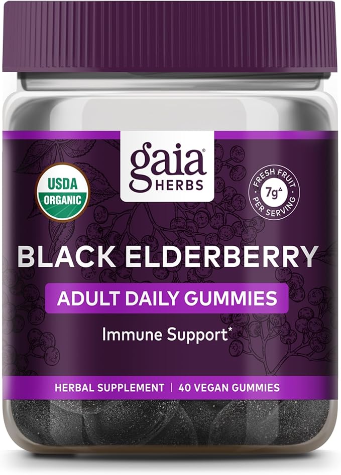 Gaia Herbs Black Elderberry Adult Daily Gummies - Delicious Immune Support Supplement - Made with Certified Organic Black Elderberries for Immune System Support, 40 Gummies (20-Day Supply)