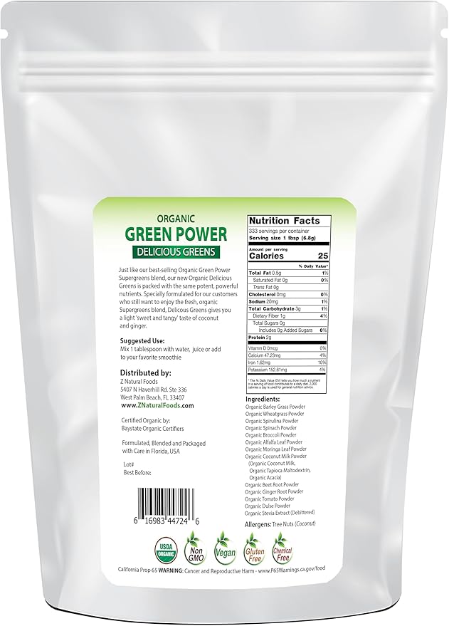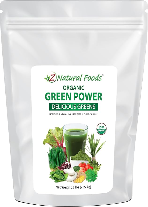 Z Natural Foods Organic Green Powder Supergreens, Superfood Powder, Antioxidant-Rich, Nutrient-Dense Greens Blend, 100% Natural Superfood, Vegan, Gluten Free, Non-GMO, Kosher, 5 Lb