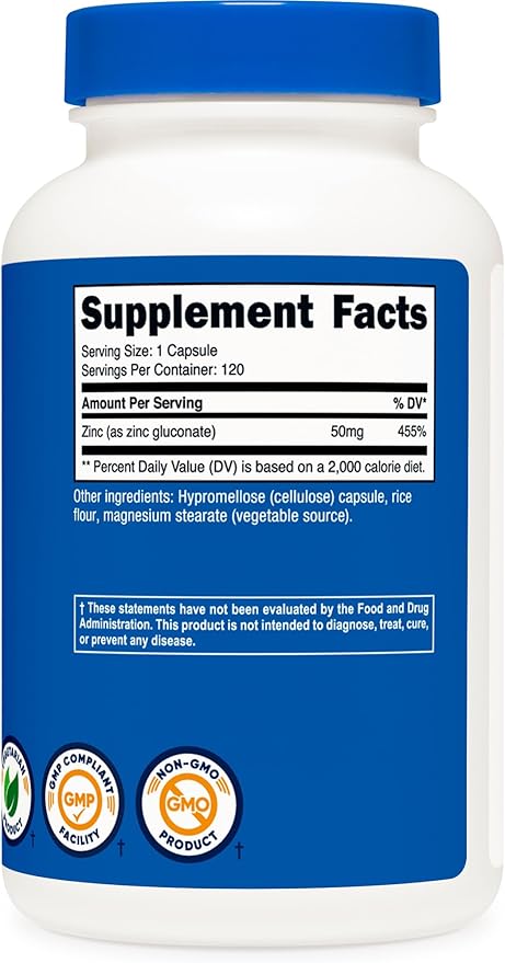 Nutricost Zinc Gluconate 120 Vegetarian Capsules (50mg) - Gluten Free and Non-GMO