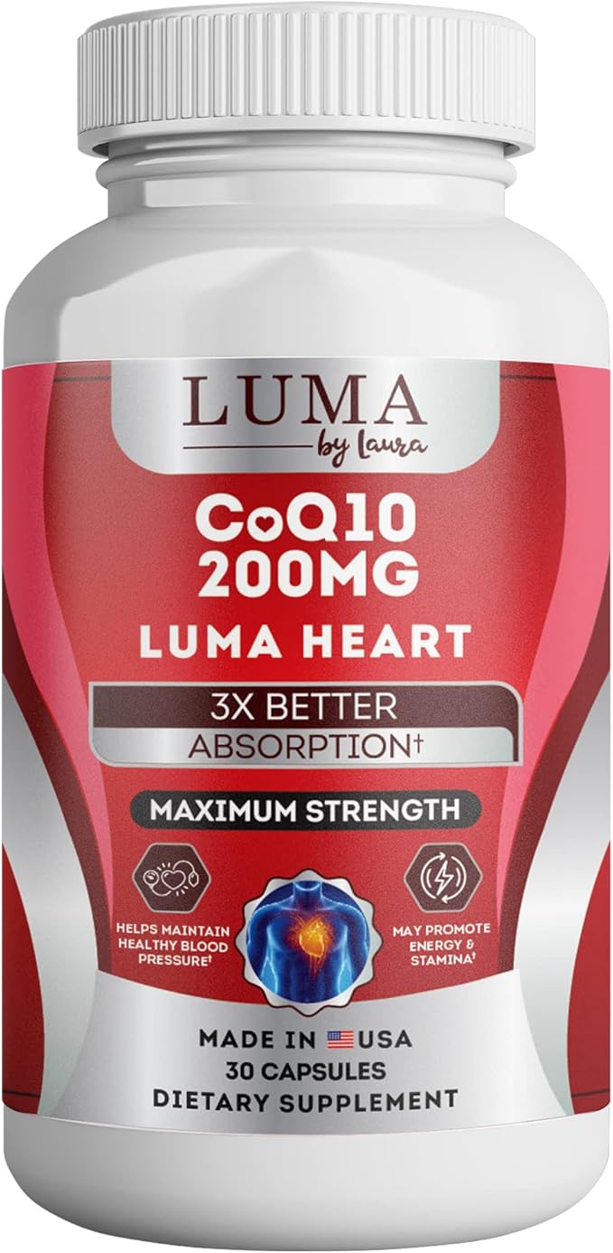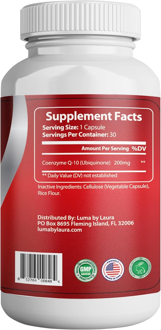 CoQ10 200mg Capsules for Heart Health - High-Absorption Nutritional Supplements - Cruelty-Free, Unflavored, & Gluten-Free - 30 Capsules per Bottle