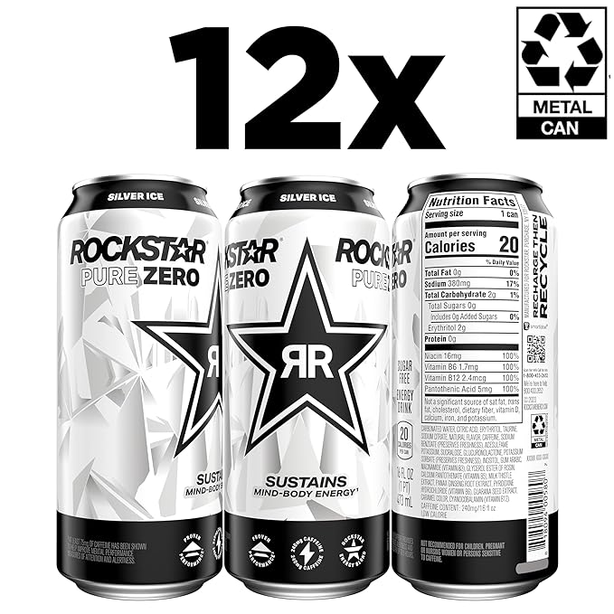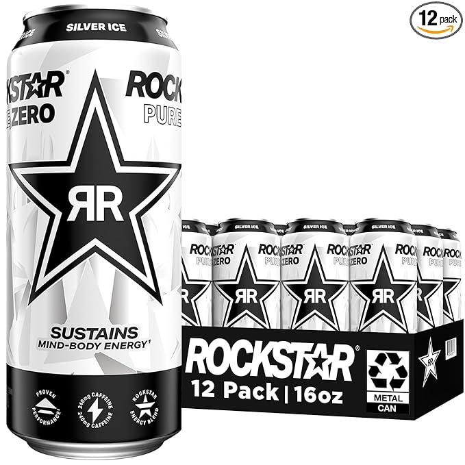 - Includes 12 (16oz) cans of Rockstar Energy Drink, Pure Zero Silver Ice