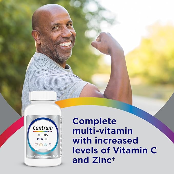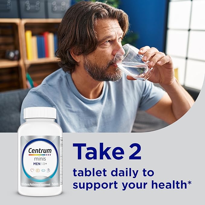 - One 280 count bottle of Centrum Minis Silver Multivitamin for Men 50 Plus, Multivitamin/Multimineral Supplement with Vitamin D3, B-Vitamins and Zinc